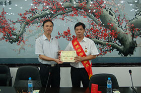 【本報訊】 7月15日上午,福建省總工會副主席林際彪一行在泉州市總工會主席傅福榮、泉州市總工會黨組書記賴暢水及晉江市總工會主席陳少華等各級領導的陪同下,蒞臨我司參觀考察,并為我司董事長施能坑頒發了“福建省勞動模范”獎章。