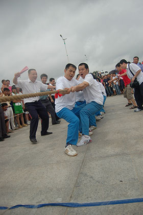 【本報訊】 7月8日,晉江市第三屆“深滬灣-衙口”沙灘旅游文化周活動之沙灘拔河賽在晉江市龍湖鎮拉開戰幕。賽上,我司參賽選手們凝心聚力、團結協作,力戰各大強隊,最終以小組賽、半決賽、決賽六戰全勝的戰績,奪得本次沙灘拔河賽冠軍。