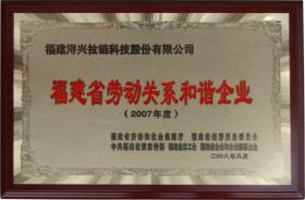 我司獲評“福建省勞動關系和諧企業”