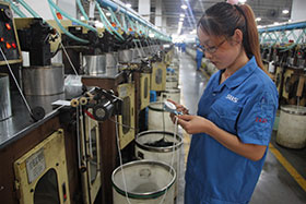 她,來自江西,窄窄的臉龐,一頭中長的短發,臉上有一些淺淺的雀斑,鼻梁上架著一副近光眼鏡,給人一種文靜中帶著干練的感覺。她就是尼龍成型的品管員——海青順。