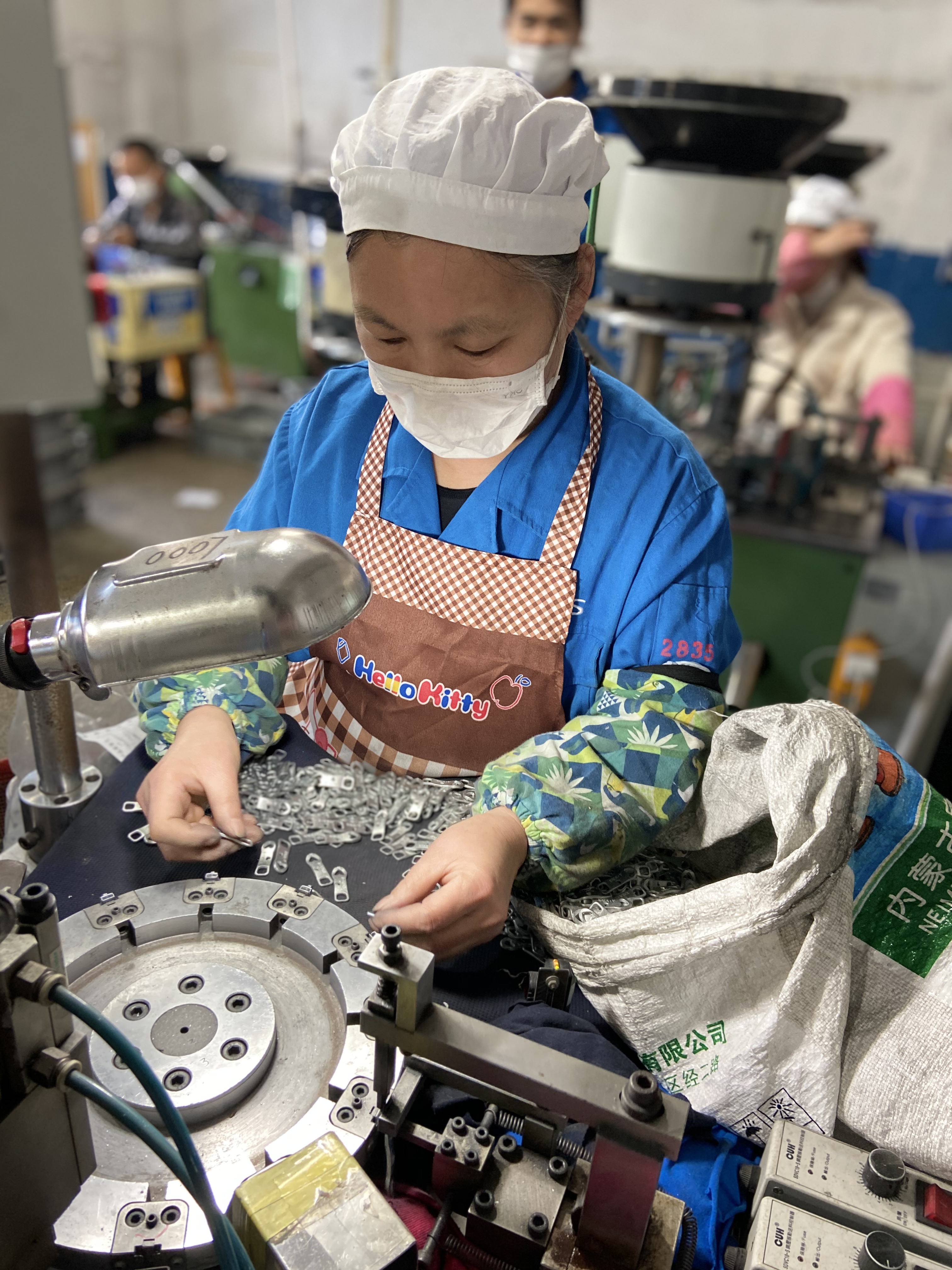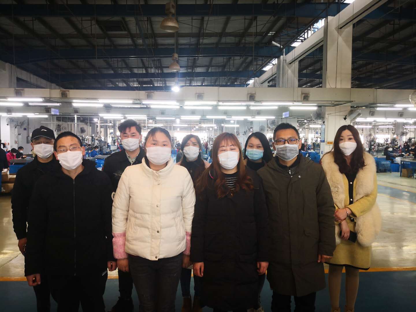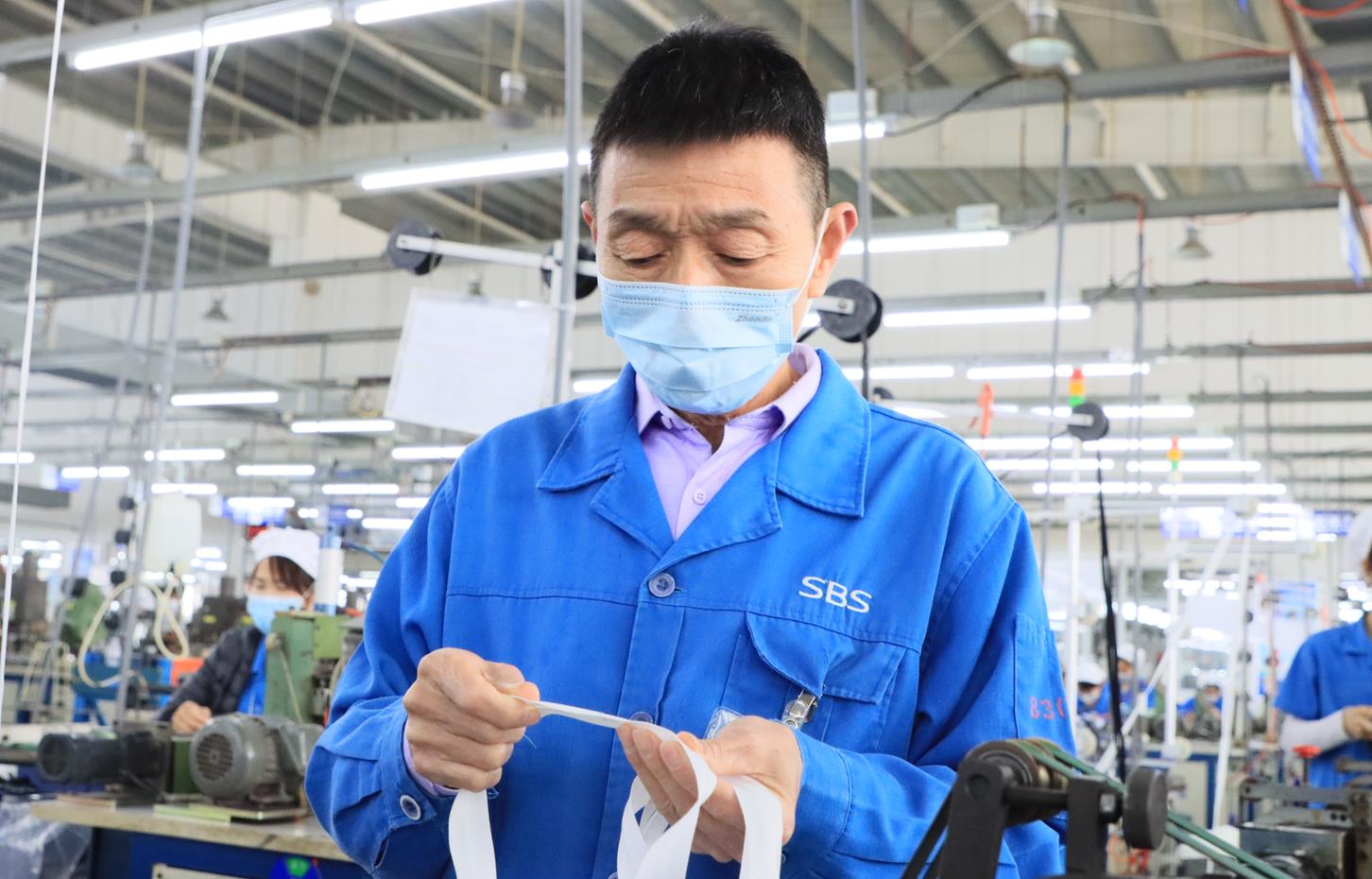 時逢旺季,上海潯興各個車間又是一派熱火朝天的工作景象。但有兩點和往年不同,一是由于防疫需要,所有人都戴上了口罩。二呢,從口罩上方露出的眉眼不難認出,那些在工位上忙碌的,很多居然是“白領”,甚至一些公司高管也參與其中。